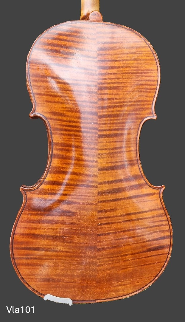 his viola exemplifies modern craftsmanship, showcasing both authenticity and beauty. Carboni never relied on antique finishing, instead applying varnish with integrity throughout his lifelong experimentation. As with all his instruments, playability was a top priority, ensuring ease of use while maximizing sound projection. He achieved this without adding unnecessary bulk—avoiding excess weight that could hinder performance or dampen vital tonal vibrations. The result is a perfectly balanced contemporary viola, fully capable of standing alongside the finest instruments in use today.