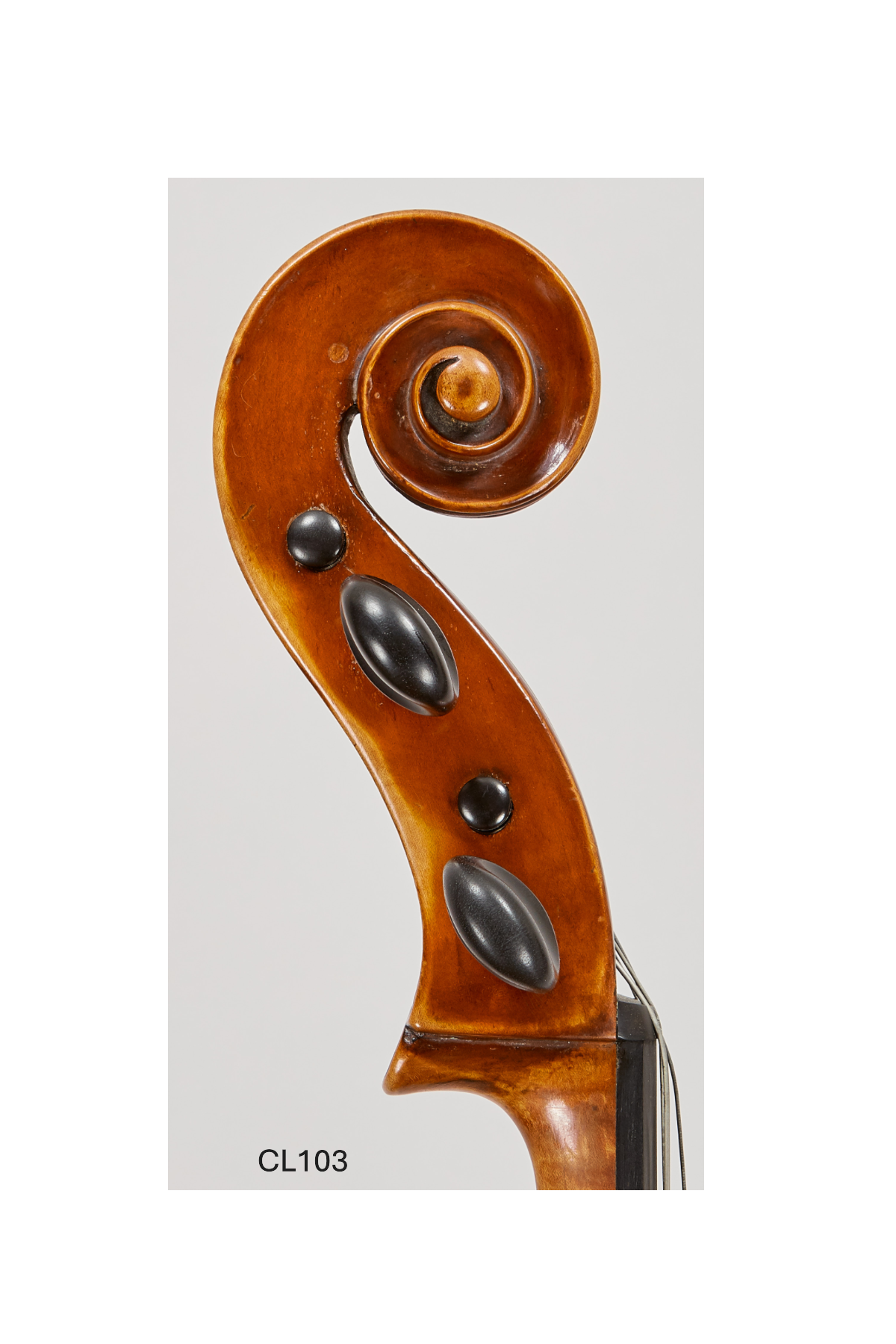 Built on a broad, generous model, the cello displays the hallmarks of central Italian workmanship: a confident, hand-cut scroll, modest yet assured edgework, and a warm golden-amber varnish of soft texture and attractive natural wear. The choice of materials and relaxed proportions reflect a maker prioritizing sound and response over visual excess.