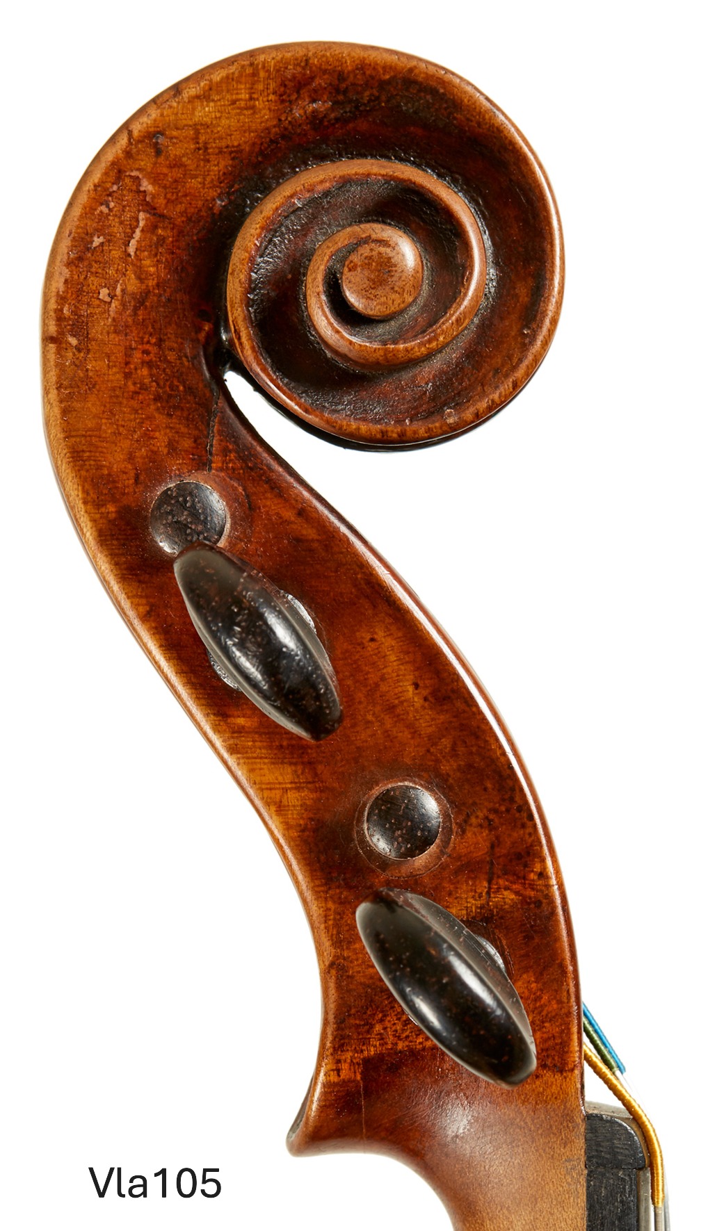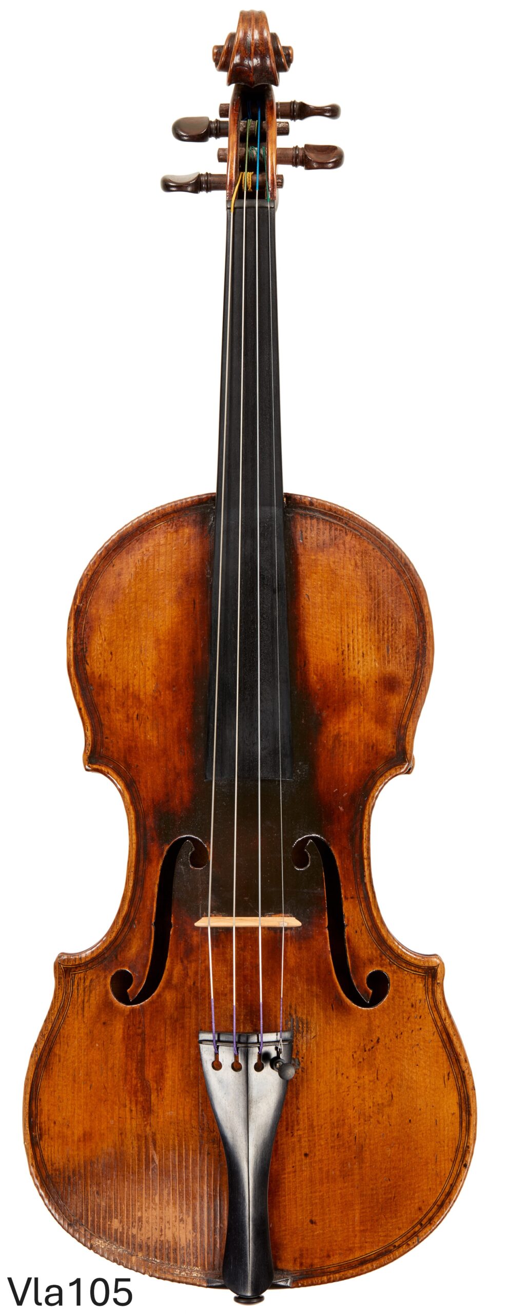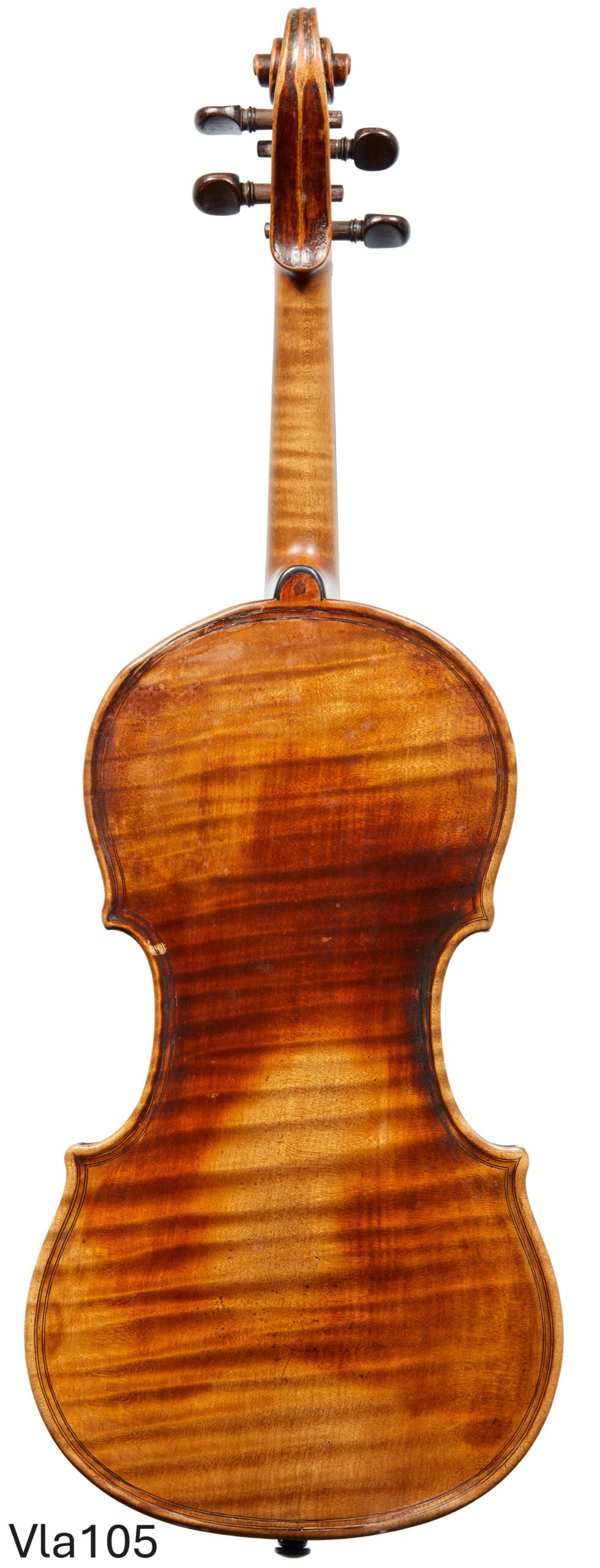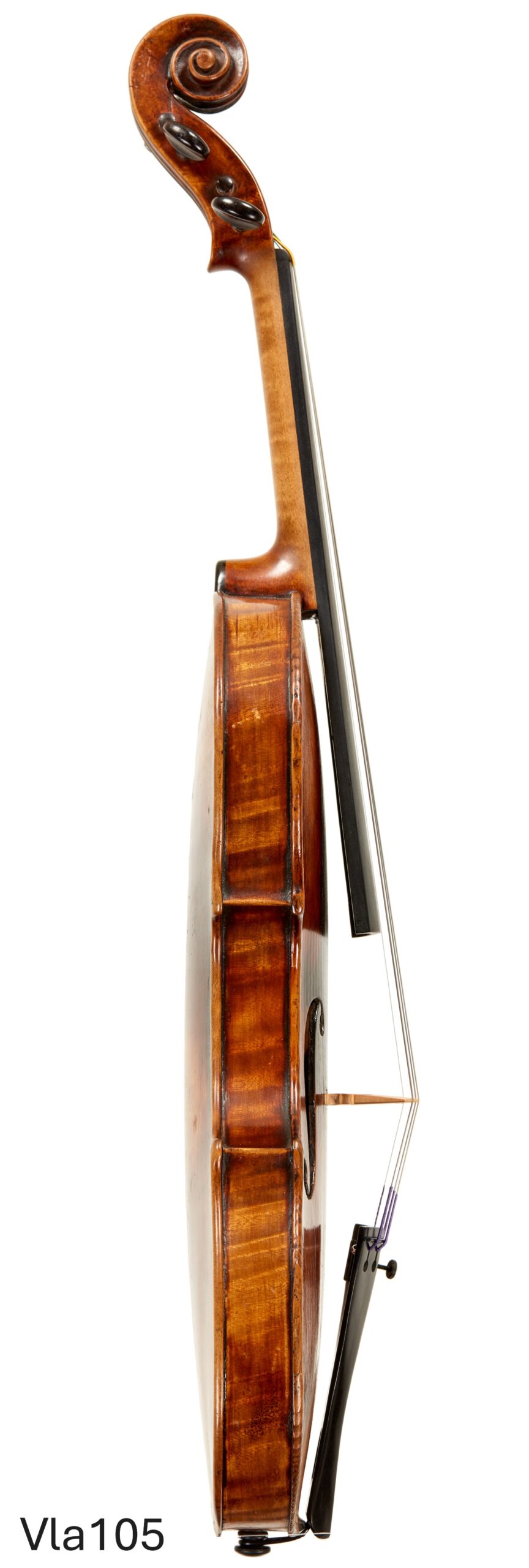 The present viola is a very small viola by Vuillaume would be perfect for a very gifted player specializing in violin playing and occasionally recording or playing chamber music as a violist. It is about 14 7/8 inches and though it is a small sized viola it has a beautiful sonority and a terrific voice for recording. The instrument is signed by Vuillaume inside and bears the double purfling of his Maggini models. The scroll is a copy. At $ 19,500.00 this instrument represents a very nice investment and a piece violin history with a great deal of charm.